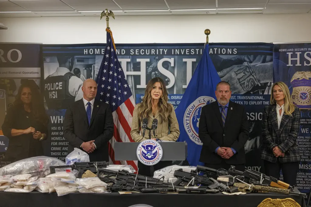 Kristi Noem, the secretary of homeland security, spoke about the ongoing U.S. Immigration and Customs Enforcement activities in Minnesota on Friday.